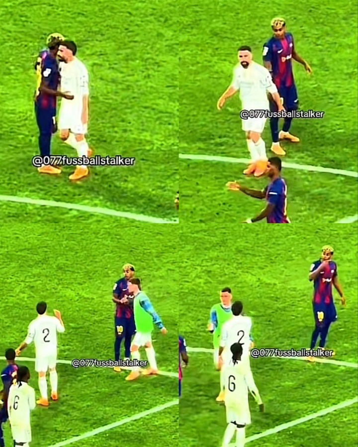 在国度德比赛后,亚马尔与卡瓦哈尔持手拥抱之后浅易不异了几句,而后爆发辱骂。据马卡报报谈,卡瓦哈尔终末对亚马尔说“若是你谣言太多,今天有你受的”,亚马尔则喊着“有种出去碰碰”并作念手势指向球员通谈,同期卡瓦哈尔连续作念着“少谈话”的手势。随后,两队球员聚在一谈爆发大限度冲破。