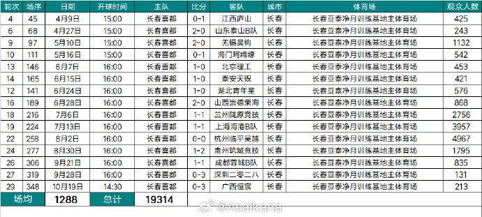 2025中乙联赛长春喜齐队现场不雅世东说念主数统计:总共19314东说念主次,场均1288东说念主。