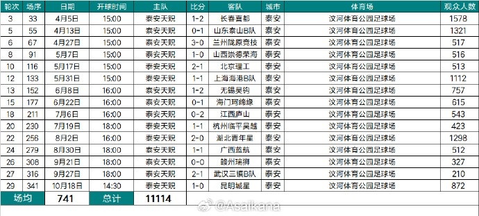 2025中乙联赛泰安天贶队现场不雅世东说念主数统计:总共11114东说念主次,场均741东说念主。