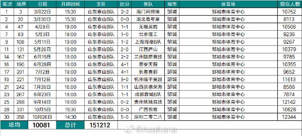 2025中乙联赛山东泰山B队现场不雅世东说念主数统计:总共151212东说念主次,场均10081东说念主。