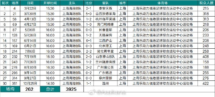 2025中乙联赛上海海港B队现场不雅世东说念主数统计:总共3925东说念主次,场均262东说念主。