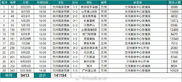 2025中乙联赛兰州陇原竞技队现场不雅世东说念主数统计:总共141194东说念主次,场均9413东说念主。