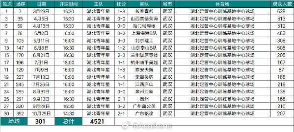 2025中乙联赛湖北后生星队现场不雅世东说念主数统计:总共4521东说念主次,场均301东说念主。