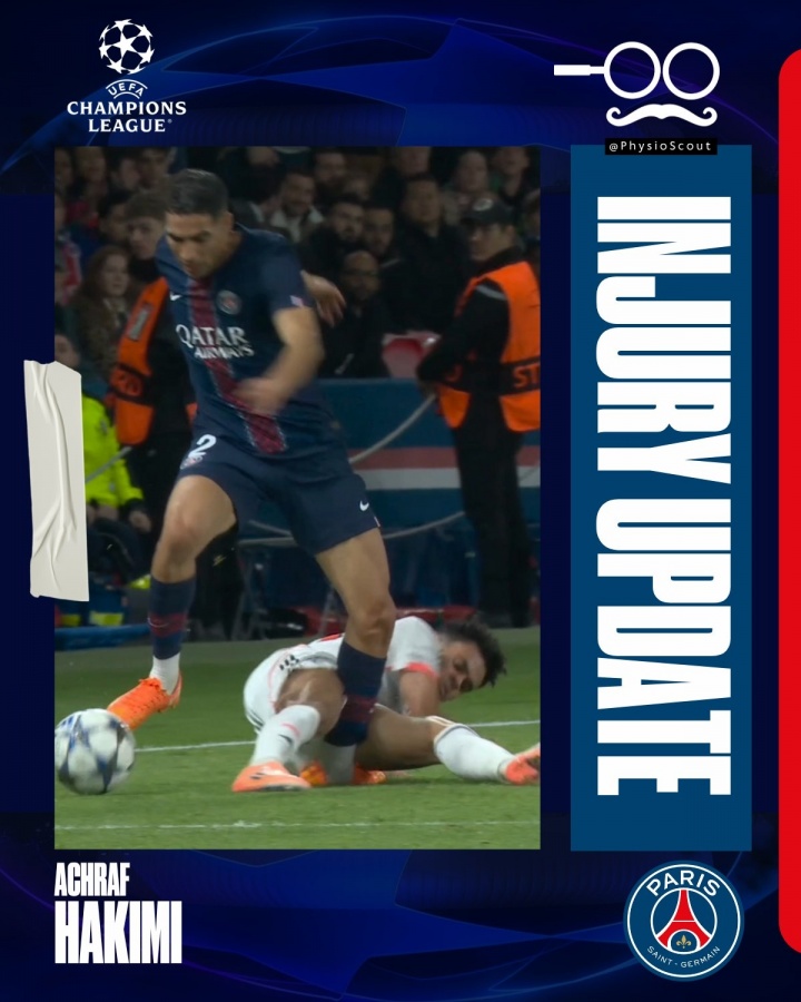 11月05日讯 专注于足球球员范围的伤病分析师帖子Physio Scout分析了阿什拉夫的伤情。