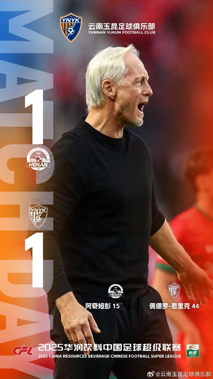 2025华润饮料中超联赛第30轮,客场作战的云南玉昆最终与敌手战成1比1平。开场后,对方前卫阿奇姆彭最初破门。上半场比赛甩手前,恩里克在前场的积极拼抢形成对方门将诞妄,巴西前卫打佛门扳平比分。最终,全场比赛比分定格为1比1。