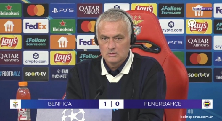 8月28日讯 欧冠附加赛次回合,费内巴切客场0-1本菲卡无缘晋级。赛后,费内巴切主帅穆里尼奥选定了采访。