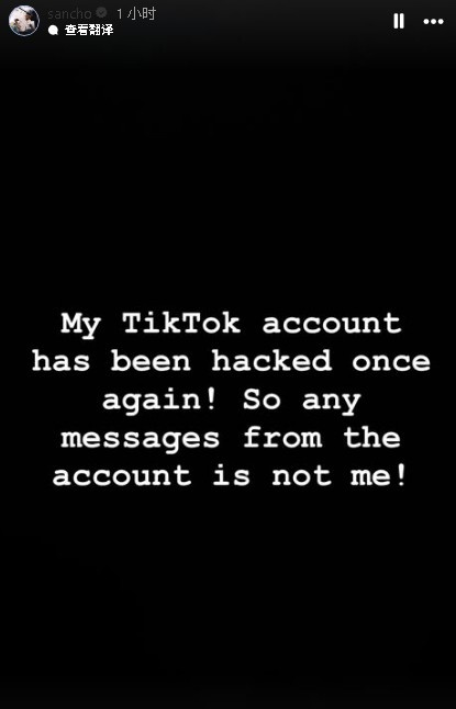 被黑了!桑乔:我的TikTok账号再次被盗!任何发出的音信齐非本东谈主