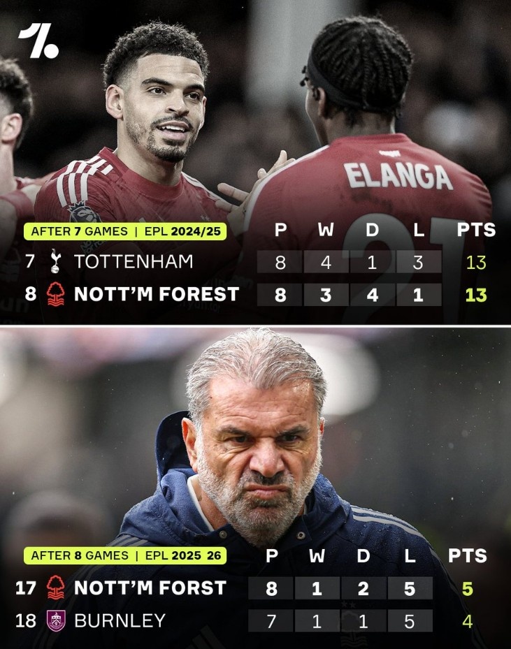 一落千丈,诺丁汉丛林上赛季前8轮仅1负列第8,本赛季8轮1胜第17