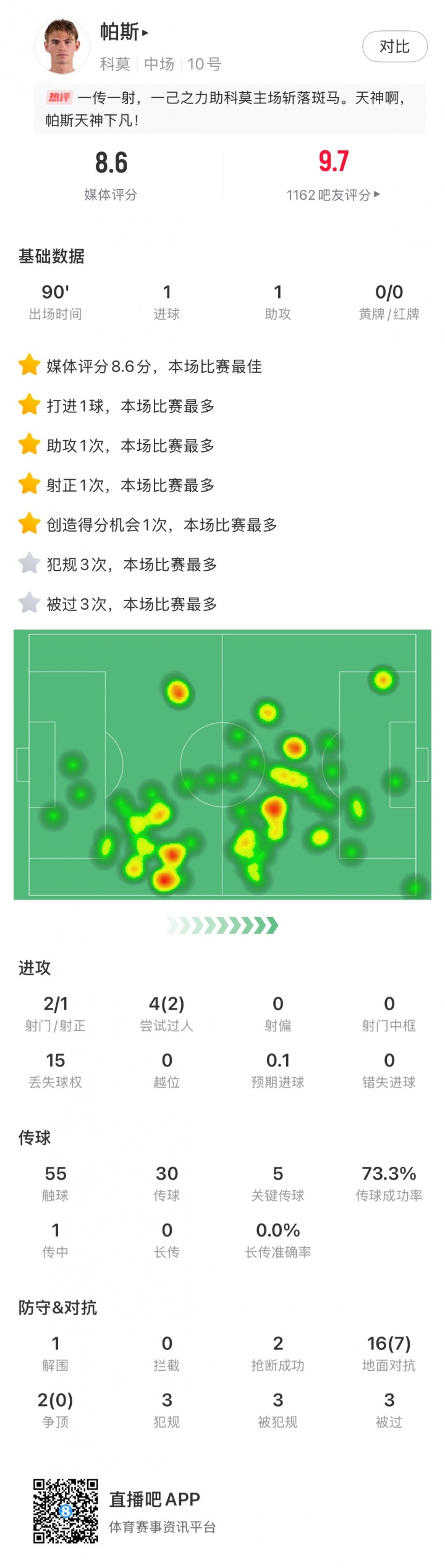 本场比赛除了传射让东谈主印象长远以外,尼科-帕斯的抵挡也让东谈主惊诧。