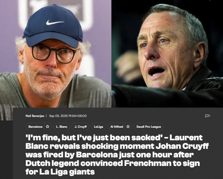 “于是我心里思:‘我要去巴塞罗那,然后签约。’这很道理,我其时以致还是拿到了公约。当我到达巴塞罗那时,克鲁伊夫对我说:‘好吧洛朗,你将与咱们签一份两年公约,然后咱们会踢这么的足球。今天晚上我带你去一家餐厅,咱们聊聊具体怎样踢球。’然则一个小时后,他就被罢免了。