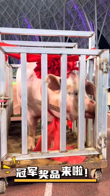 10月13日讯 2025年五华“县超”总决赛打响,横陂队4-2斩落卫冕冠军转水队夺冠,夺冠奖品是一头猪猪。