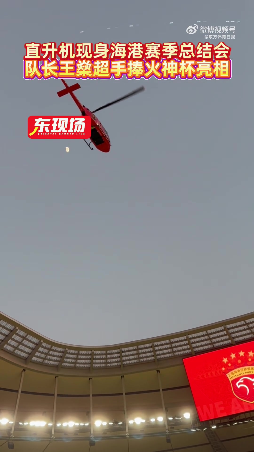 直升机现身海港赛季追思会!队长王燊超手捧火神杯亮相