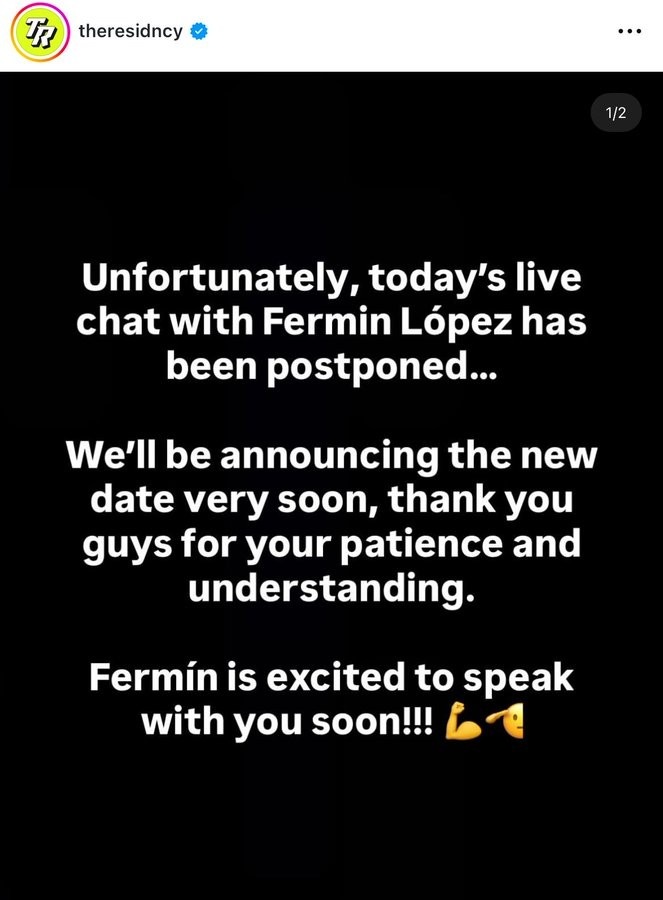 和转会传说联系吗?费尔明今天的直播对话活动俄顷被推迟