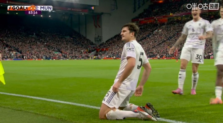 10月20日讯 英超第8轮利物浦vs曼联,第84分钟B费助攻马奎尔头球破门!曼联再下一城,2-1零散利物浦。马奎尔的庆祝,号称帅气!