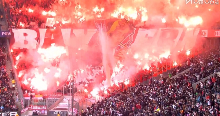 🔥颤动!拜仁远征球迷赛前亮出TIFO,并燃放烟花点火看台