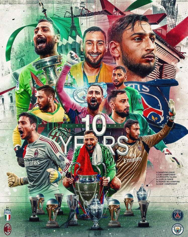 10月25日讯 10年前的今天门将多纳鲁马完成了个东谈主处事生存的首秀,球员也在个东谈主社媒晒出海报顾虑这一格外时分,配文写谈:“很高傲我在10年前完成了我方生存首秀。”