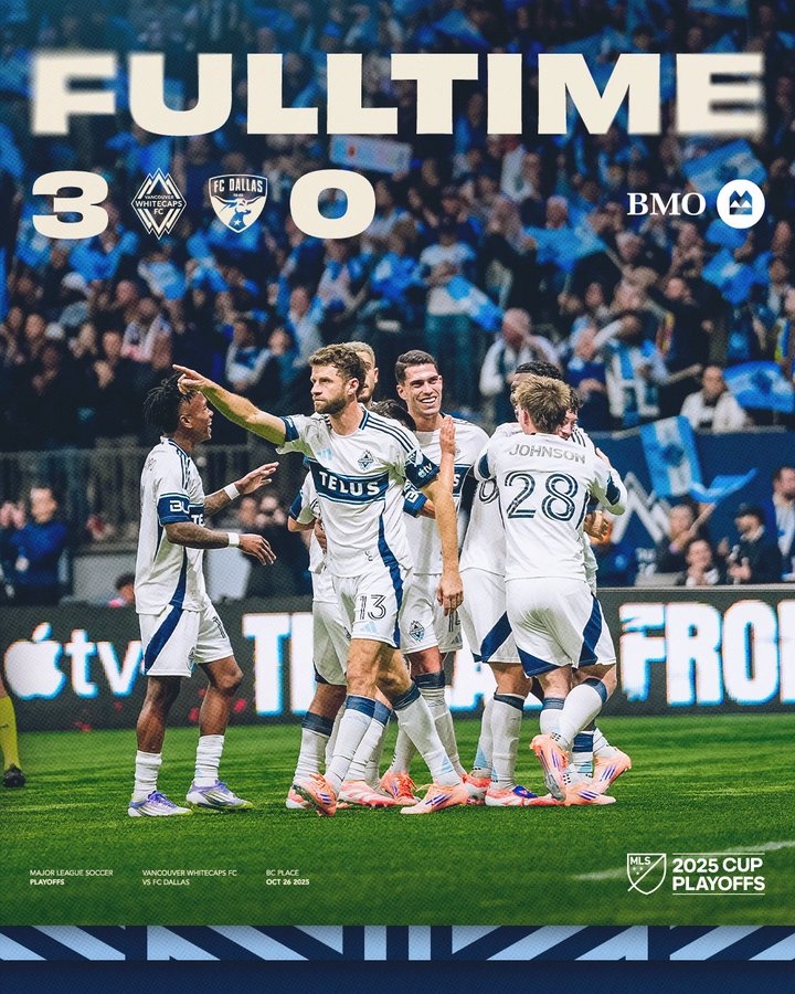 穆勒点射立功!温哥华白浪季后赛首场3-0打败达拉斯FC
