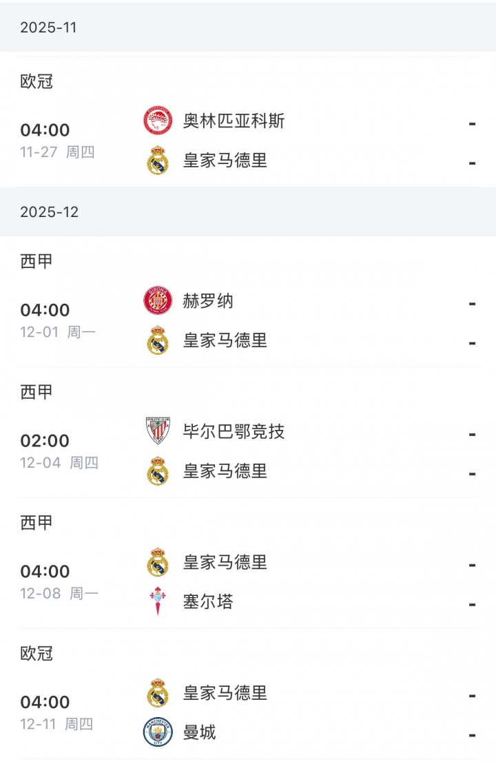 北京期间11月27日4点,皇马将在欧冠第5轮客场挑战奥林匹亚科斯。