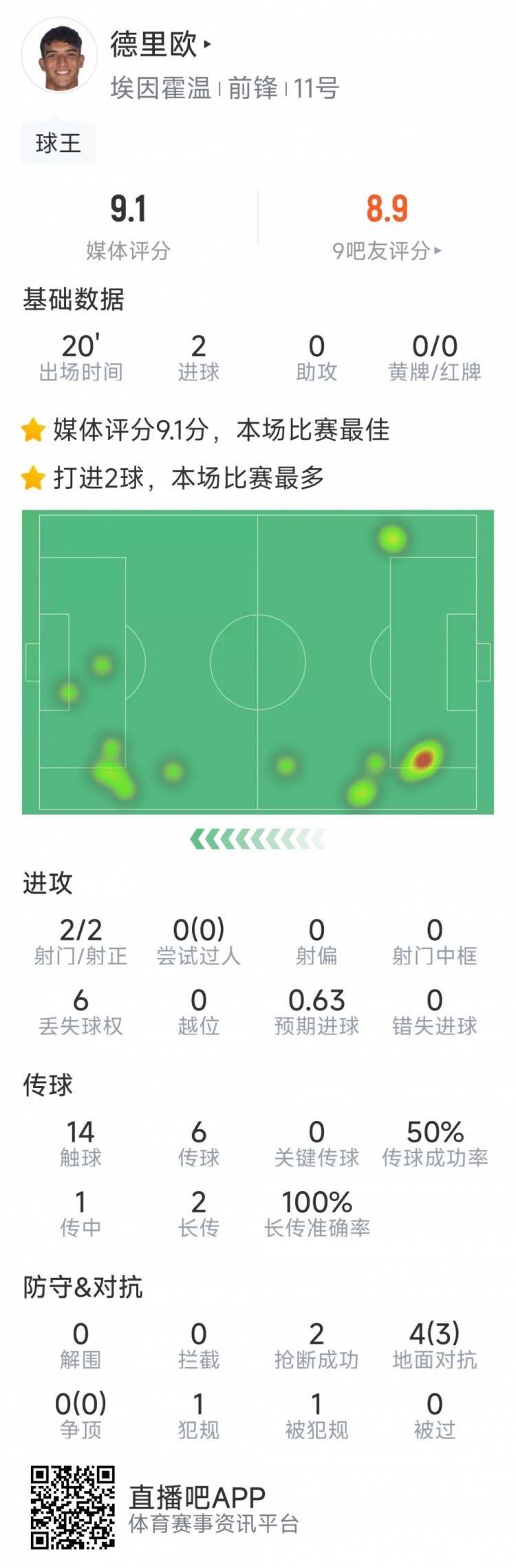 据统计,本场替补登场梅开二度的德里欧为埃因霍温在9场欧冠打进3球,而他在球队25场荷甲比赛只打进2球。