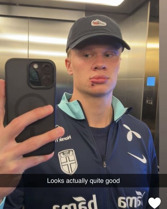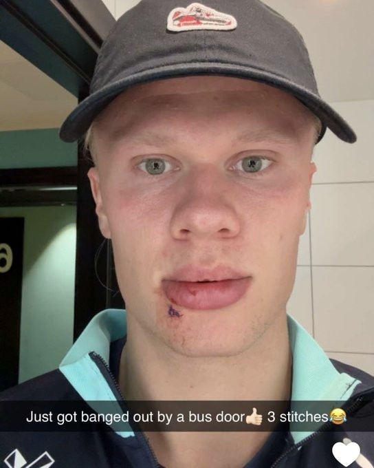 熬煎!哈兰德社媒晒自拍:被大巴车门撞了,缝了3针&看起来还挺好