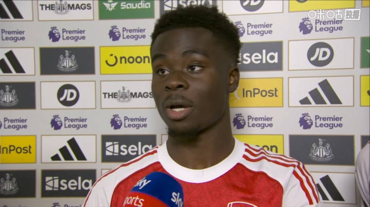 阿森纳客场2-1逆转绝杀纽卡,萨卡赛后难掩逆转绝杀的昌盛,同期也谈到了本场比赛中的争议判罚。