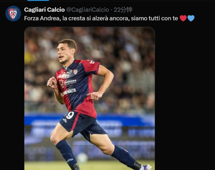 卡利亚里官方音信,时尚贝罗蒂碰到十字韧带扯破。