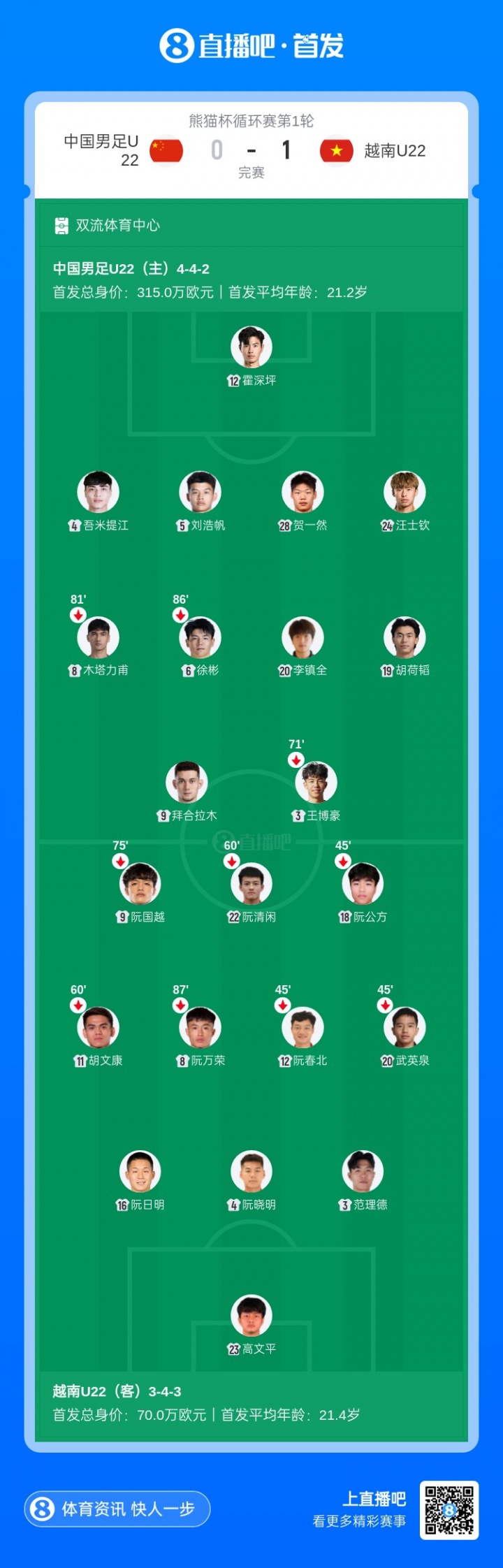 11月18日讯 熊猫杯第3轮,中国U22男足vs乌兹别克斯坦U22男足,赛前首发公布,较上场打败韩国U22,U22国足首发更换9东说念主,仅刘浩帆、贺一然陆续先发。