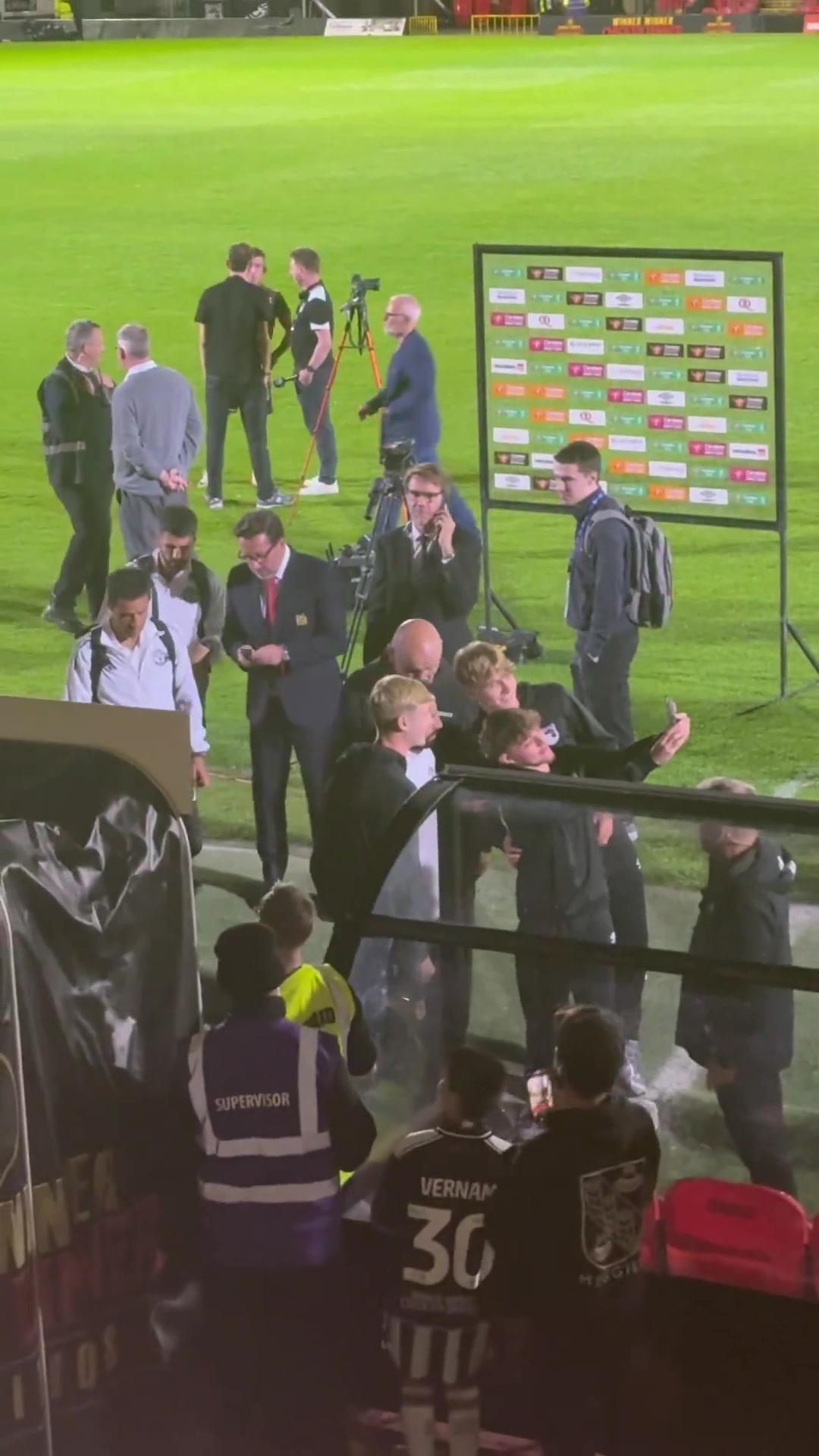 保捏风韵👍阿莫林联赛杯出局后与对方球迷合影